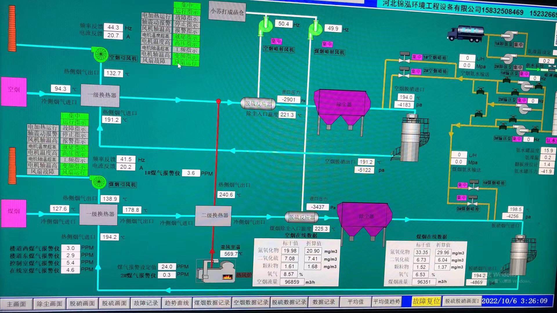 本項(xiàng)目加熱爐共有2路廢氣排出,分別為煤煙廢氣及空煙廢氣,由于煤煙廢氣中一氧化碳濃度較高,二路煙氣不能混合,所以采用二套除塵脫硫脫硝系統(tǒng)。