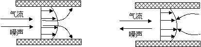 B)逆流時(shí)(氣流與聲傳播方向相反) ,聲波向管道中心彎曲,導(dǎo)致聲波與吸聲材料接觸減少,不利于消聲降噪。
